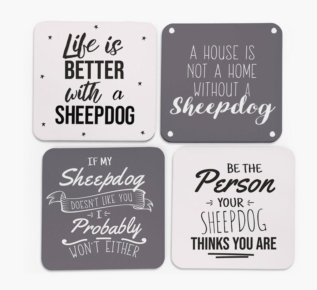 'Sheepdog Quote' - Personalized Old English Sheepdog Coasters (Set of 4)