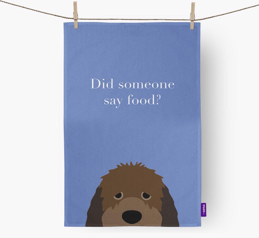 Printed with the question, ‘Did someone say food?’, this dish towel knows exactly what’s on Your Otterhound’s mind.