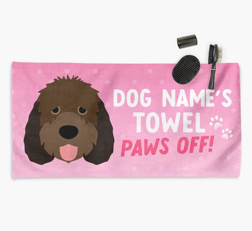 Perfect for messy pups and for pampering your Otterhound at bathtime, this soft and absorbent towel is made for cleaning your mucky pup and drying them off in a flash. It's personalized with Otterhound's name and icon and is printed with a message for everyone else to keep their paws off it!
