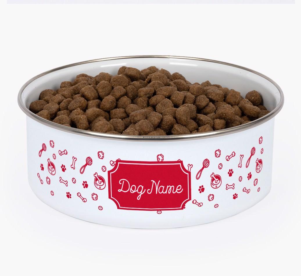 Name Badge And Pattern: Personalized Enamel Dog Bowl
