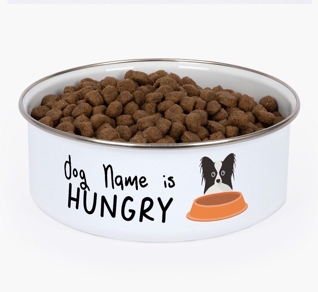 Personalised with Papillon's name and icon, this enamel bowl is available in a choice of colours and it features a fun wrap-around print to let everyone know when your pup is hungry or full. It's complete with a travel lid, perfect for food on the go!