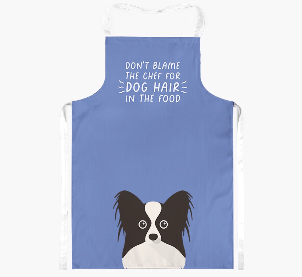 If you’re getting tired of people coming round and moaning about Papillon hair in the food, you’re going to need this apron to remind them that you cannot be blamed, it’s Papillon’s fault!