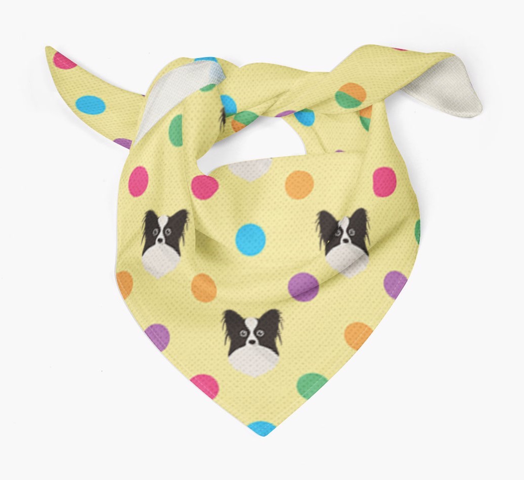 Available in five fantastic color combos, this bandana features a spot and Papillon icon design that's sure to impawress Your Papillon!