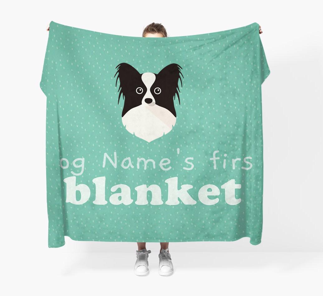 'Dog's First Blanket' - Personalized Papillon Throw Blanket