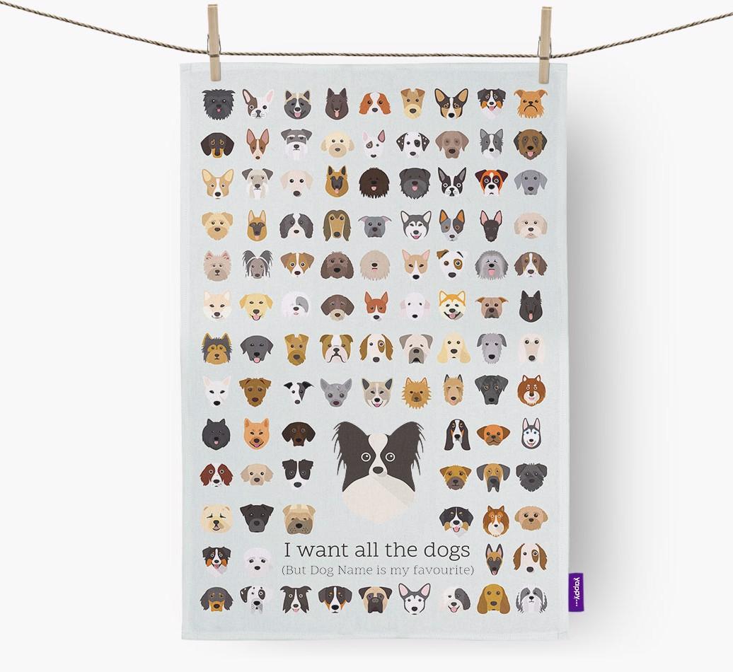 'I Want All the Dogs' - Personalized Papillon Dish Towel