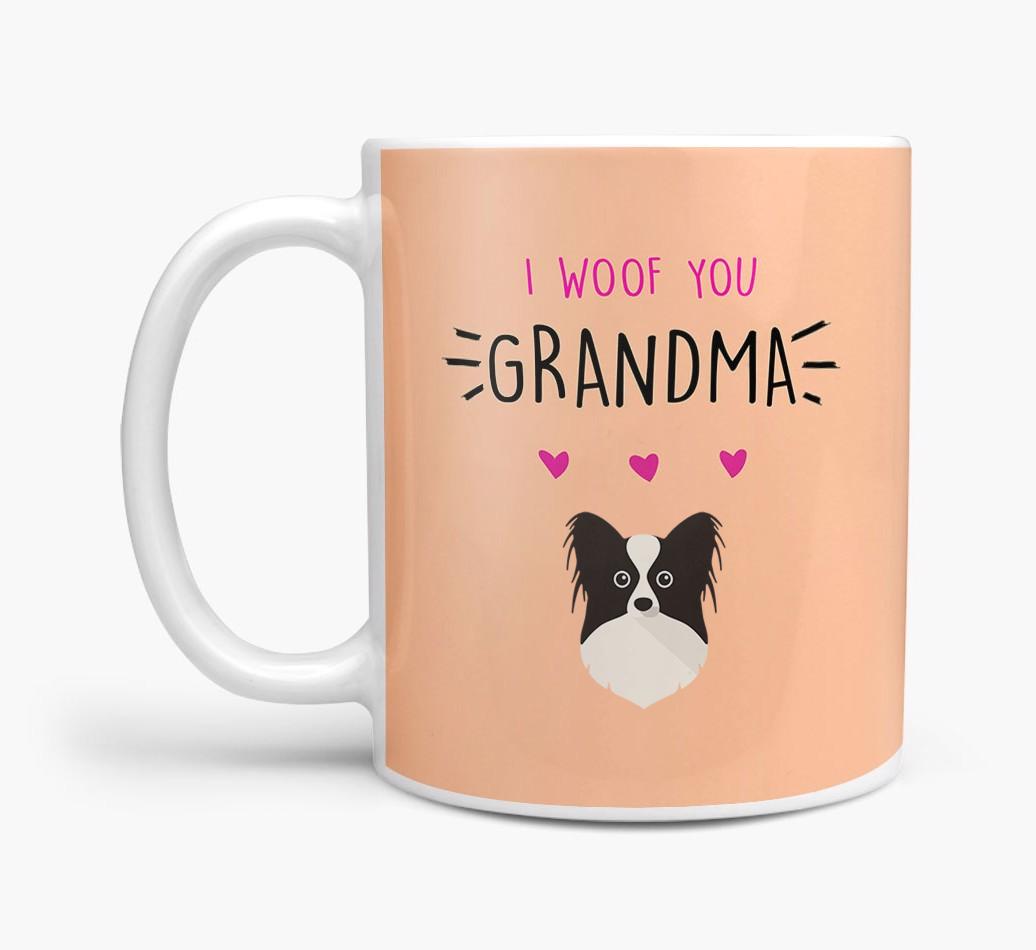 Personalized with your pup's adorable icon, this mug is a charming way to treat your pup's grandma and express how much you and Papillon woof them.