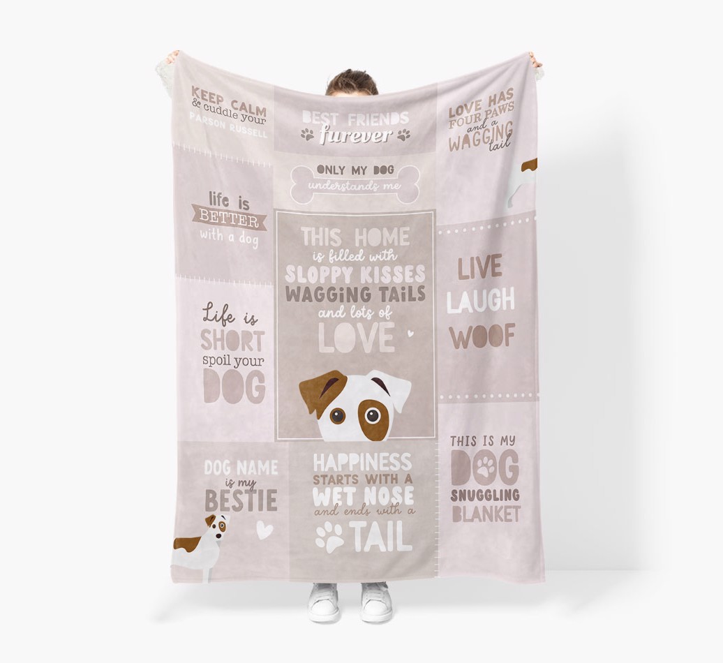 Filled with pawgeous quotes about your furry friend, this blanket is the perfect way to make naptimes with your Parson Russell the coziest ever.