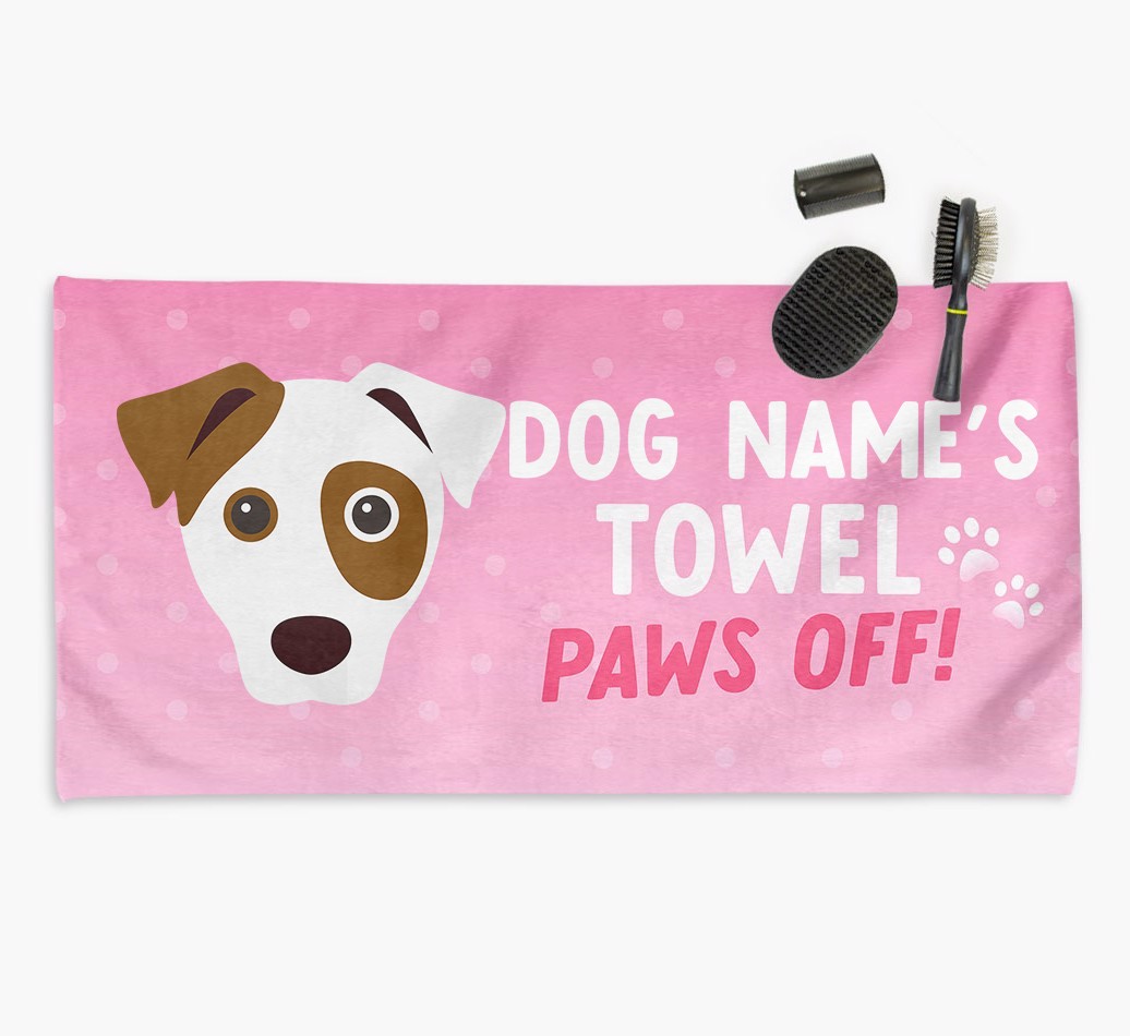Perfect for messy pups and for pampering your Parson Russell at bathtime, this soft and absorbent towel is made for cleaning your mucky pup and drying them off in a flash. It's personalized with Parson Russell Terrier's name and icon and is printed with a message for everyone else to keep their paws off it!