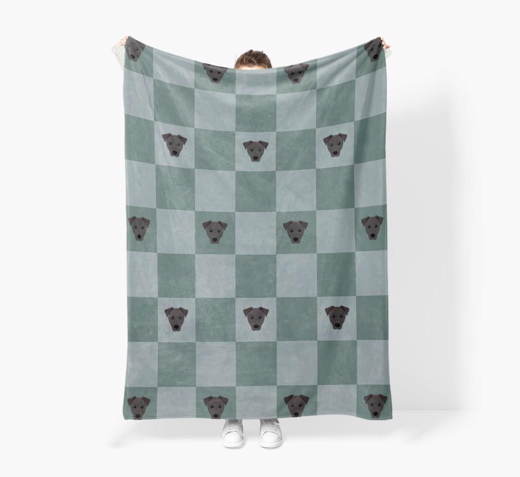 'Checkboard' - Personalized Patterdale Terrier Blanket: Premium Sherpa Fleece
