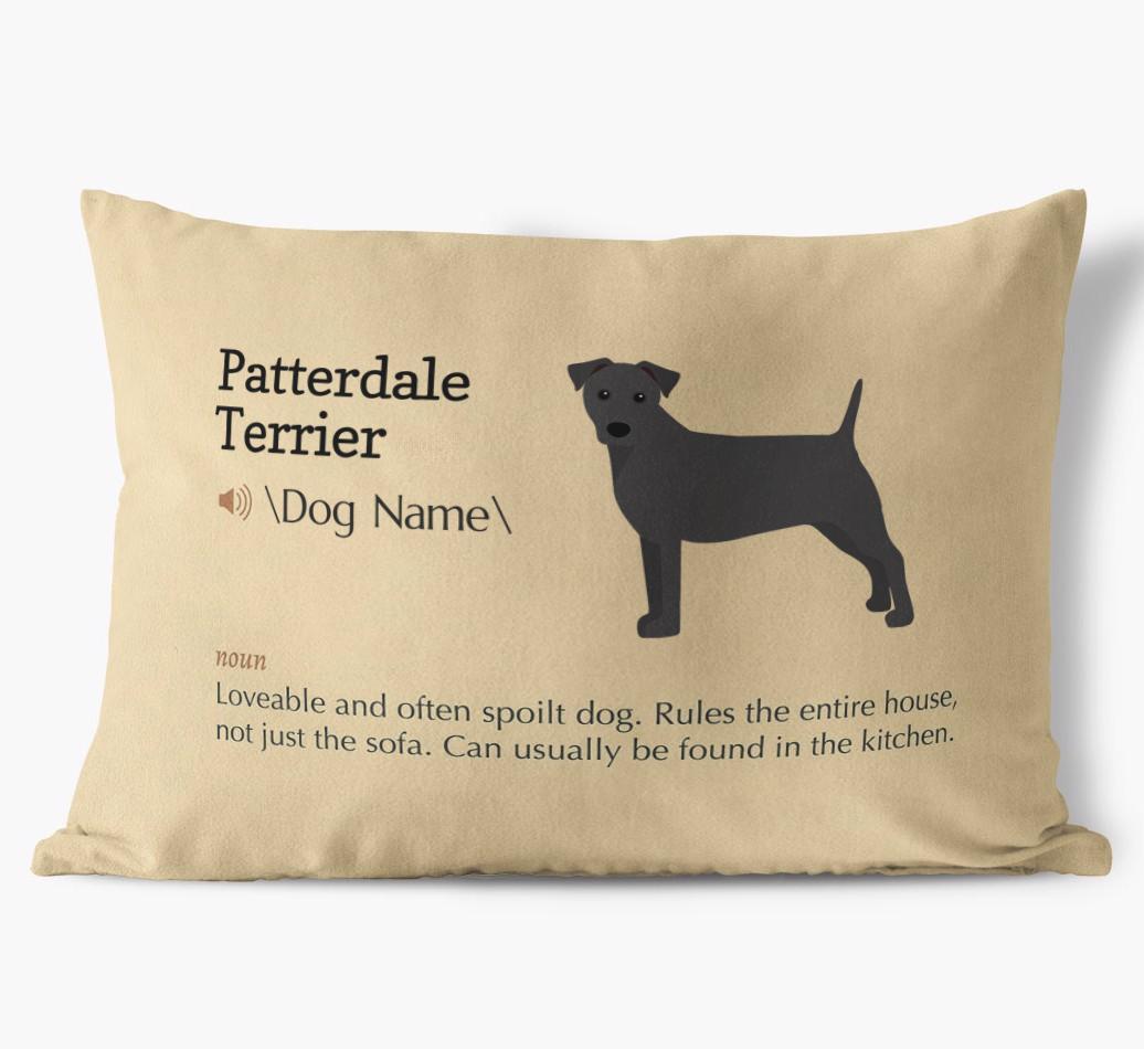 Personalized just for Your Patterdale and featuring a unique Patterdale Terrier definition and silhouette, this pillow truly is like no other.