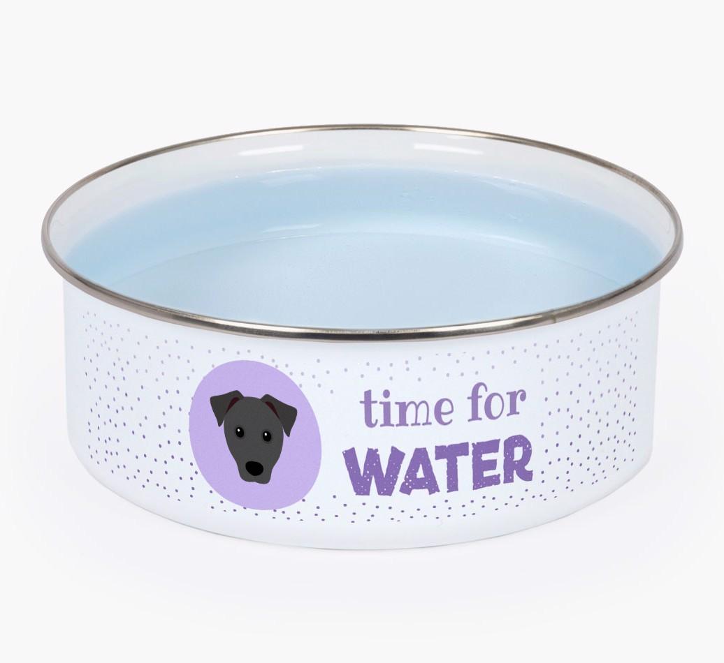 Time For Water: Personalized Enamel Patterdale Terrier Bowl