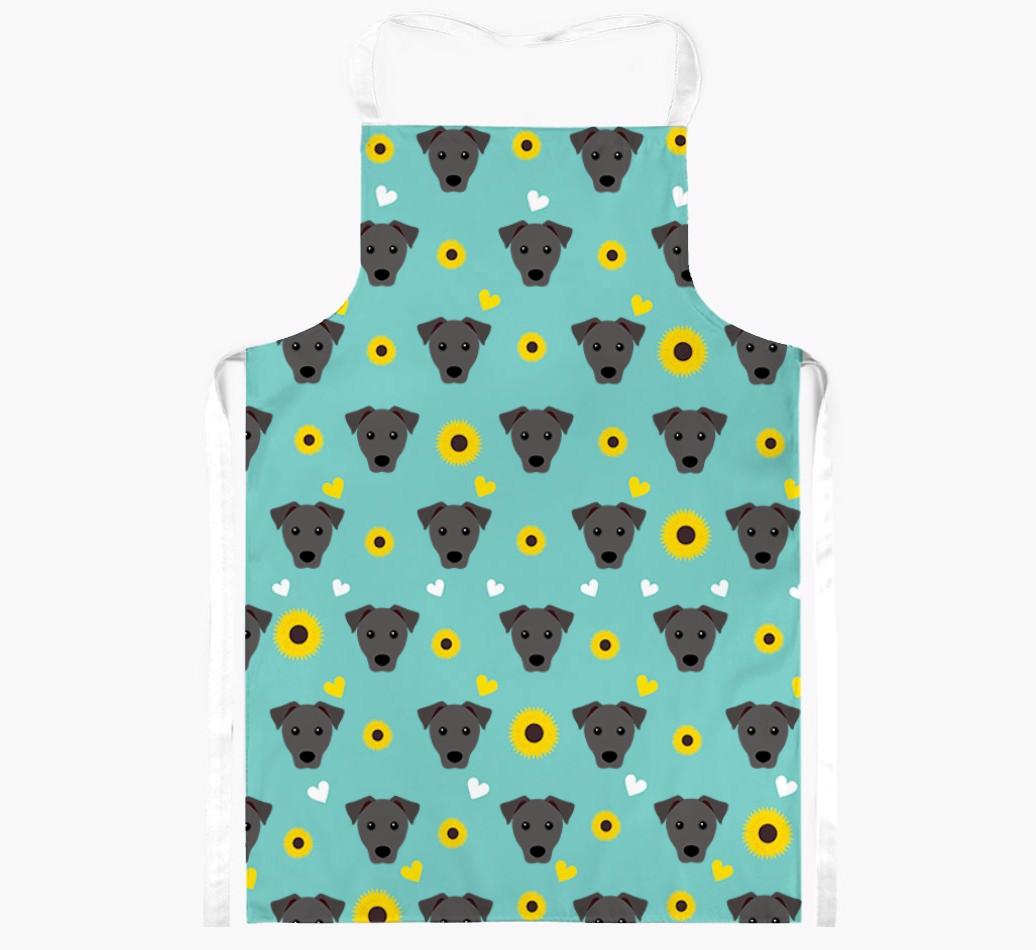 This apron has a delightful sunflower and heart pattern, and best of all - it's personalized with Patterdale Terrier's face too! This cute and colorful apron is sure to put a smile on every dog lover's face.