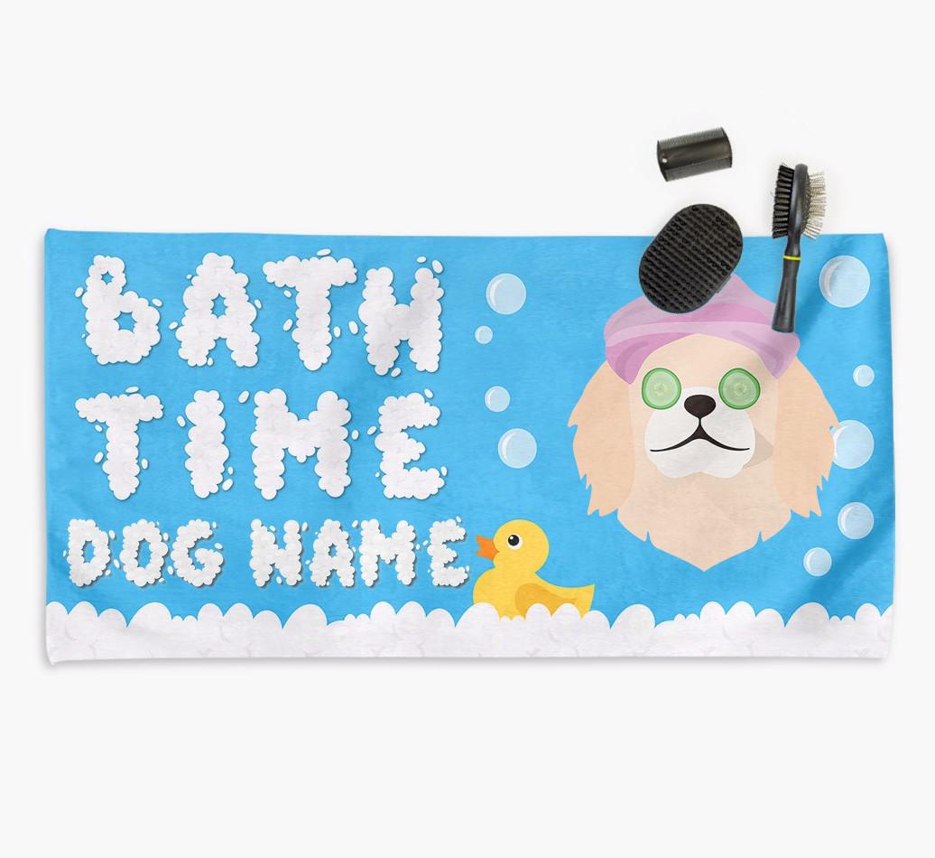 Does Your Pekingese love bubble baths? Once they've bathed, take their bathtime experience to the next level by wrapping them up in their very own towel, that's personalized just for them.
