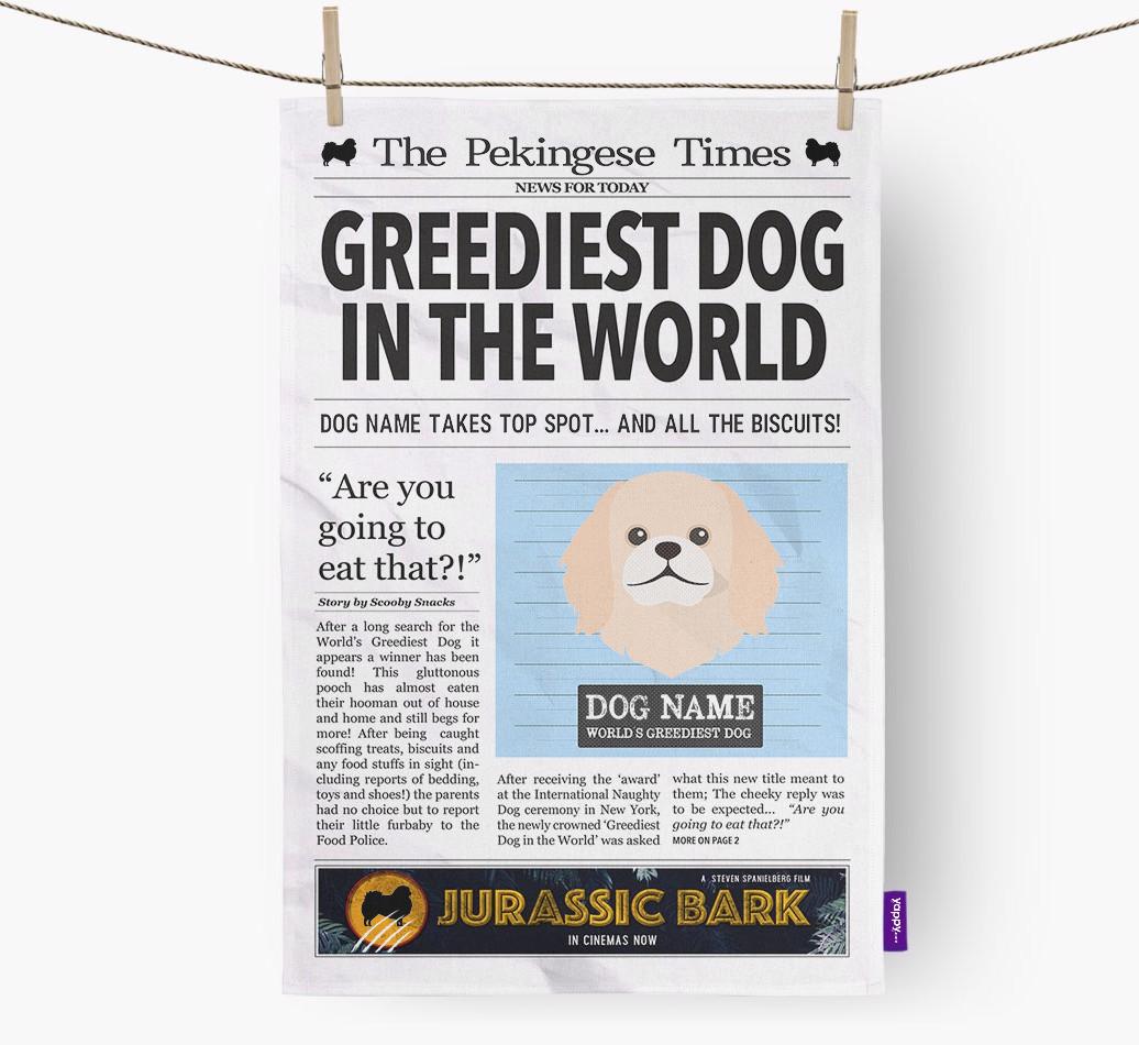 This unique dish towel puts Pekingese truly in the spotlight (as if they weren’t already). It features a Yappy exclusive Pekingese mug shot icon as well as two smaller Pekingese silhouettes.