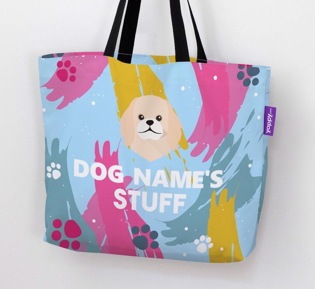 Featuring a vibrant swoosh of brushstrokes, this bag is personalized with your Pekingese’s name and icon to make it even more radiant.