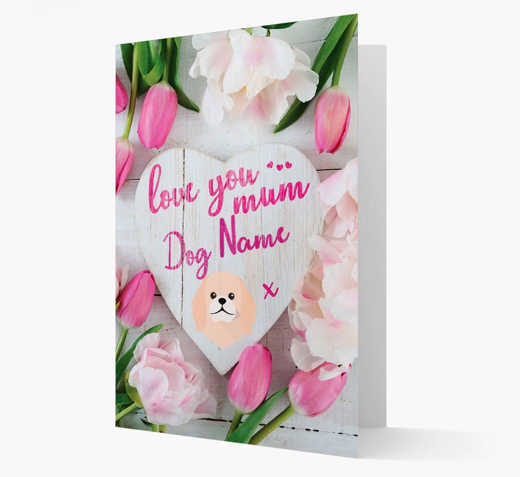 Featuring a fabulous array of flowers and personalized with Pekingese's name and icon, this card is destined to make the Pekingese mom in your life smile.