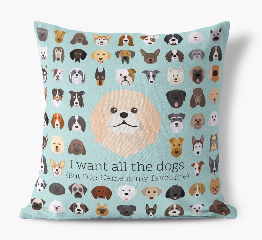 I Want All the Dogs: Personalized Pekingese Canvas Pillow
