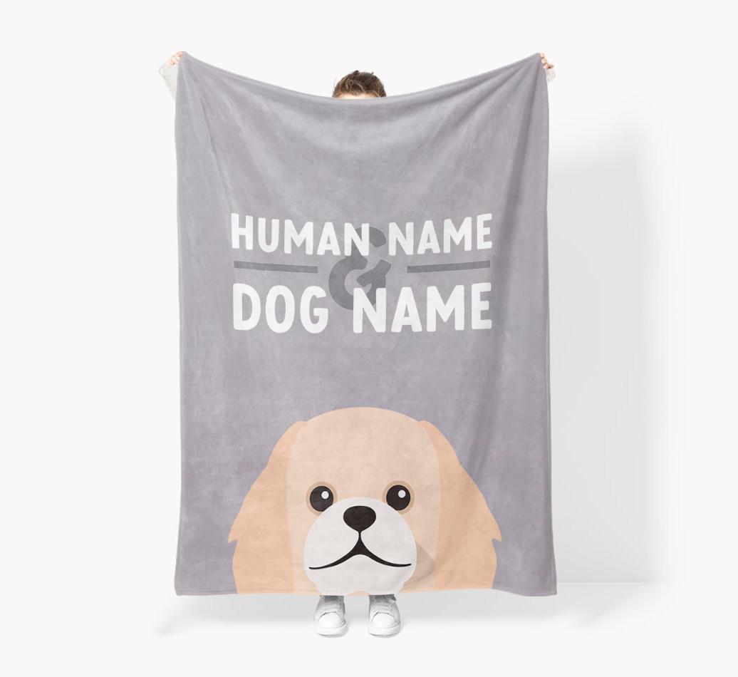 Human & Dog Name: Personalized Pekingese Premium Sherpa Fleece Blanket
