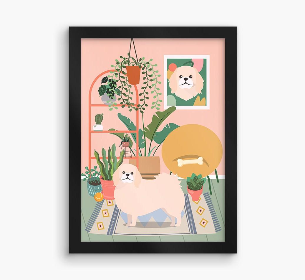 This contemporary piece of wall art pairs a chic living space with lovely pastel tones and a jungle of houseplants. Complete with the one that makes your house a home - Pekingese! - this print is a wonderful way to display your love for your pooch.