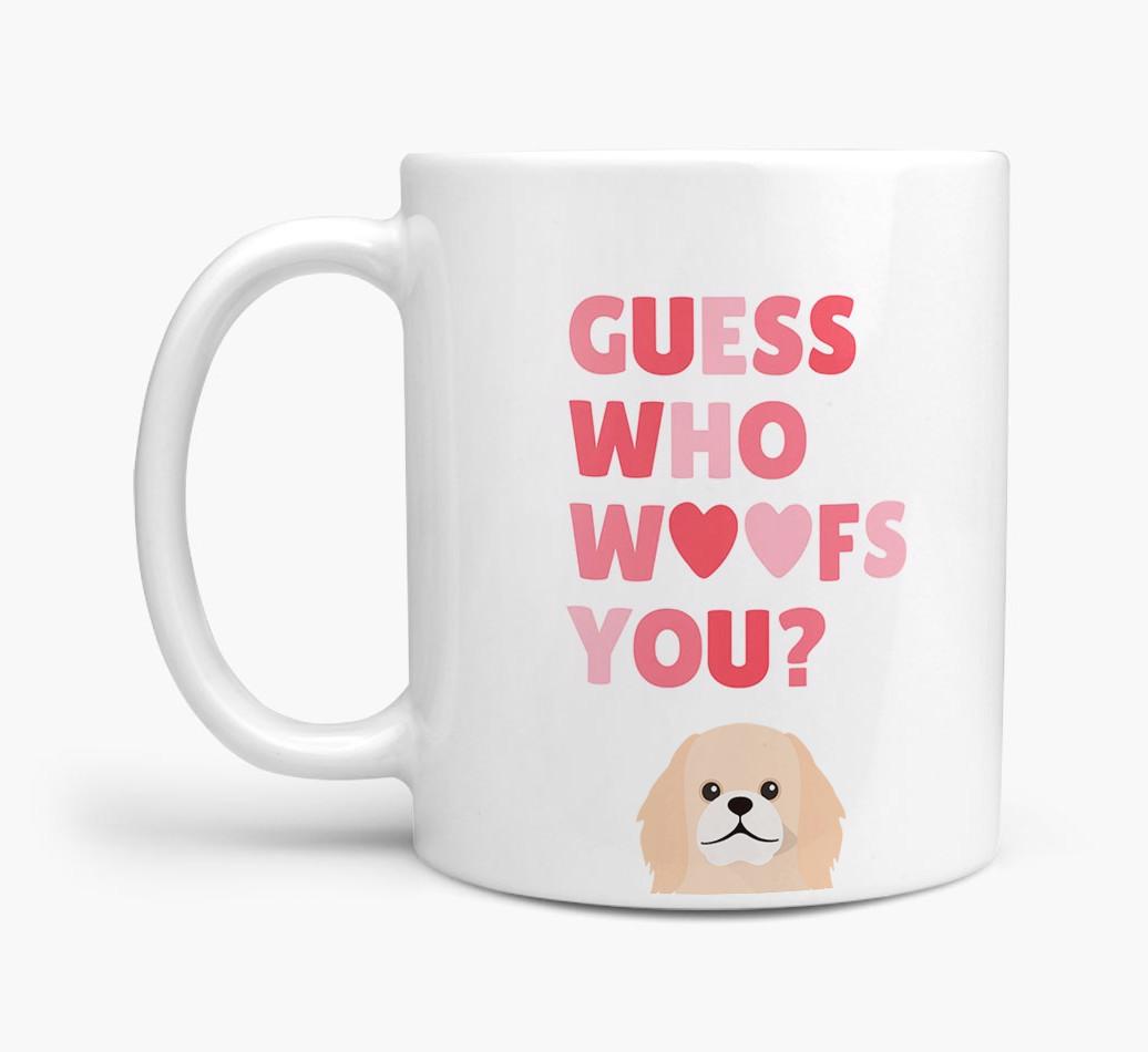 Personalized with Pekingese's cute face, this adorable mug is perfect for showing off the one who "woofs" you - how sweet!