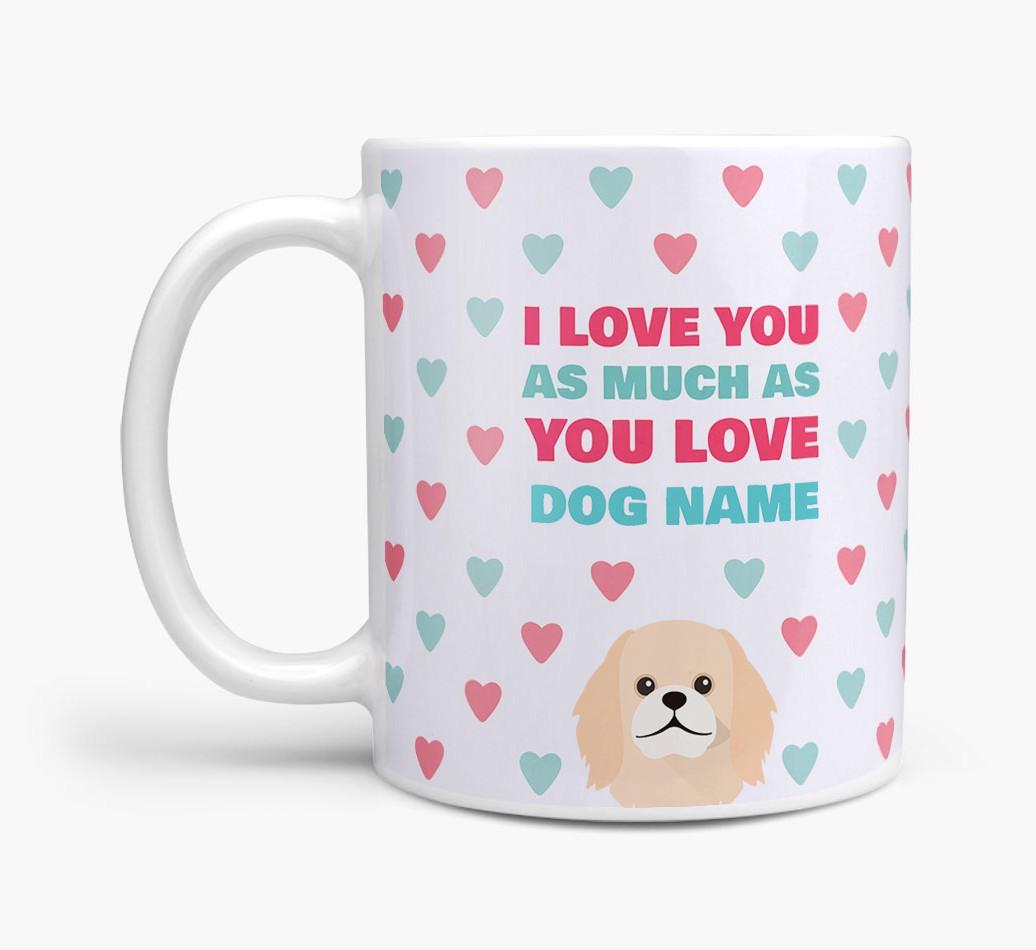 Featuring a pattern of hearts and personalized with Pekingese's name and their adorable icon, this mug is sure to make the receiver feel plenty of love and warmth towards you – and that’s not just from their coffee!