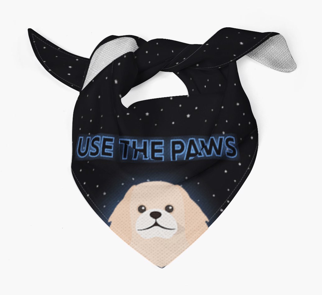 Featuring a starry night sky and glowing text, this bandana is made extra special with the addition of your Pekingese's cute icon.