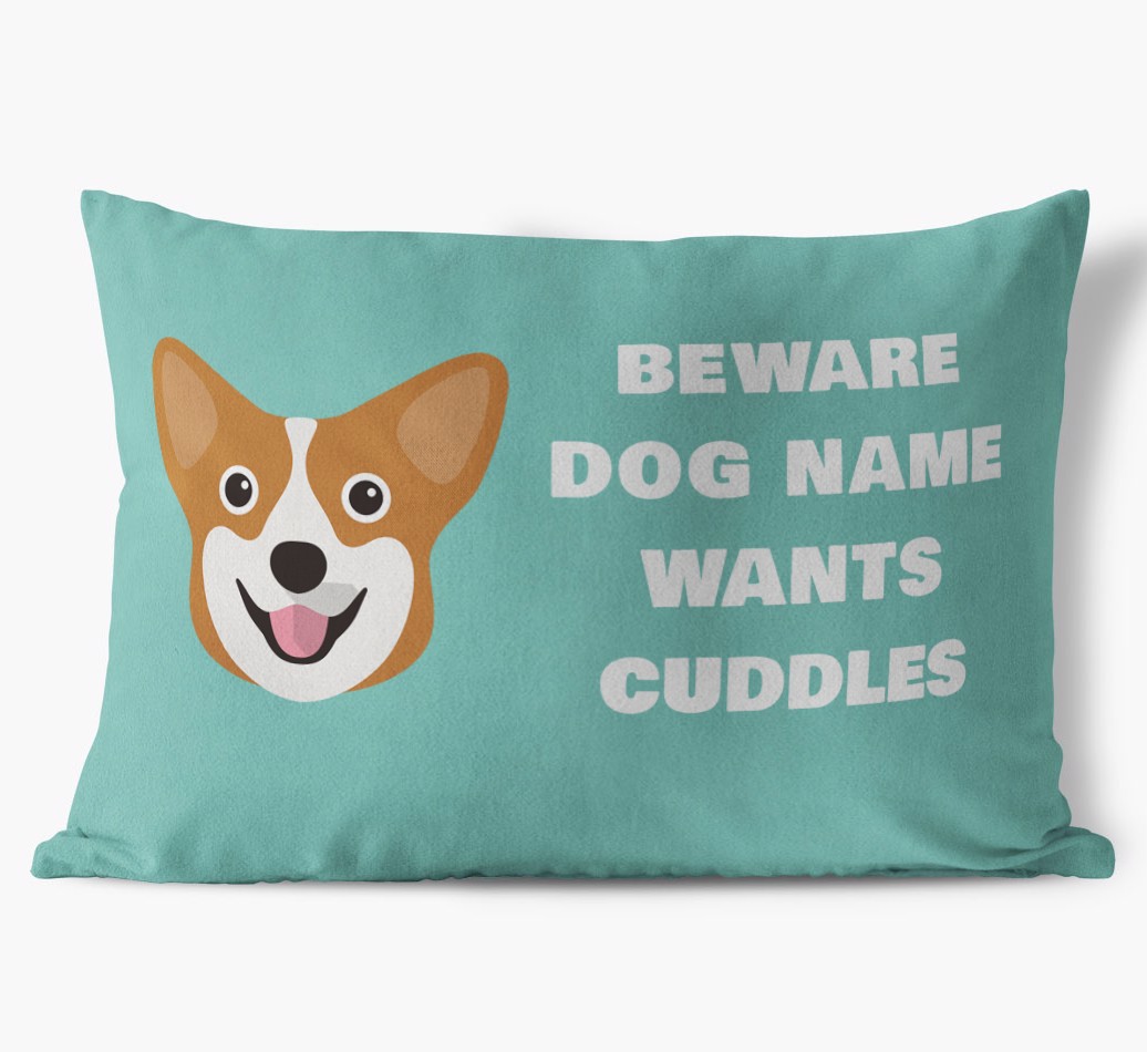Beware of Cuddles: Personalized Pembroke Welsh Corgi Soft Touch Pillow