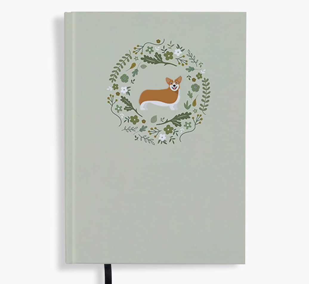 Floral Wreath: Personalized Pembroke Welsh Corgi Notebook