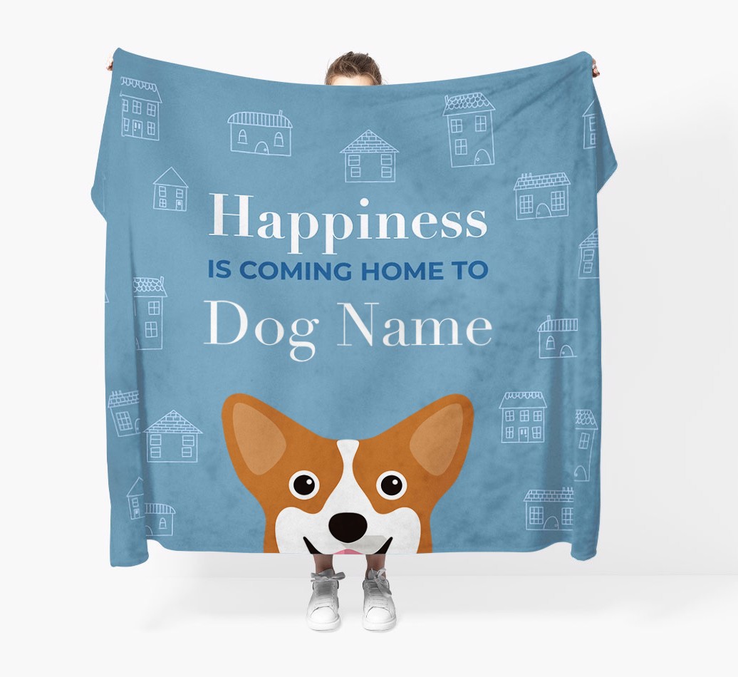 Happiness Is: Personalized Pembroke Welsh Corgi Throw Blanket