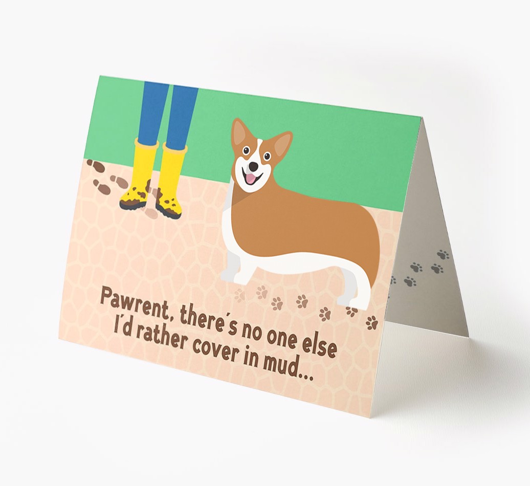 This comical card is sure to delight Pembroke Welsh Corgi's pawrent (without getting muddy), especially as it stars their Corgi's cheeky icon.