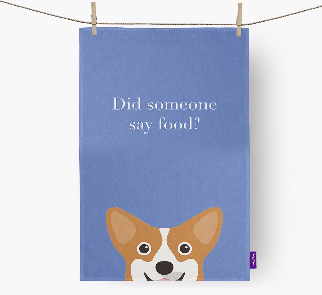 'Did Someone Say Food?' - Personalized Pembroke Welsh Corgi Dish Towel