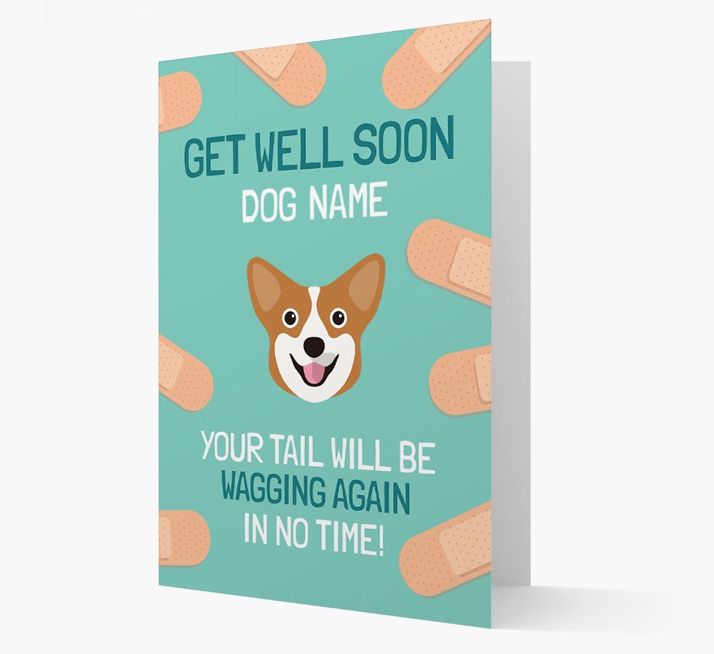 'Tail Wagging Again in No Time!' - Personalized Pembroke Welsh Corgi Get Well Soon Card