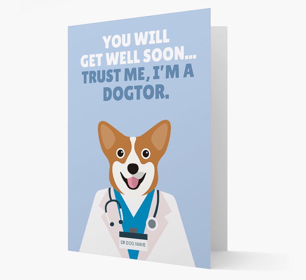 'Trust me I'm a Dogtor' - Personalized Pembroke Welsh Corgi Get Well Soon Card