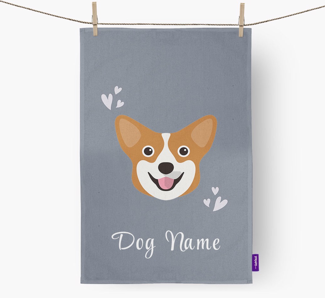 'Hearts' - Personalized Pembroke Welsh Corgi Dish Towel