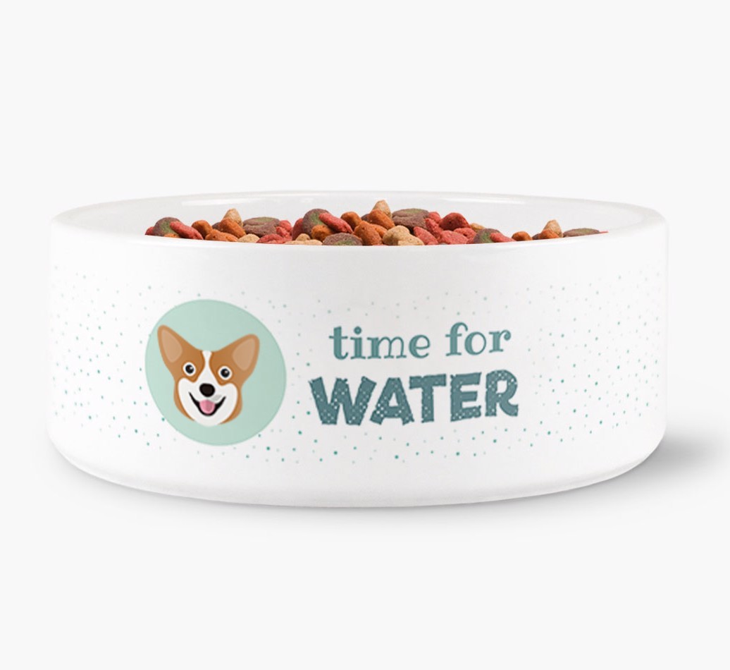 'Time for Water' - Personalized Water Bowl for your Pembroke Welsh Corgi