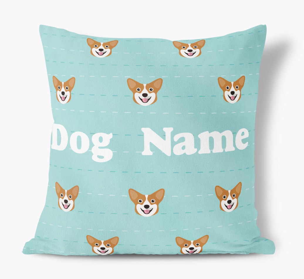 Featuring a furbulous Pembroke Corgi icon pattern, this pillow is available in six chic color-ways and is personalized with Your Pembroke Corgi's name.