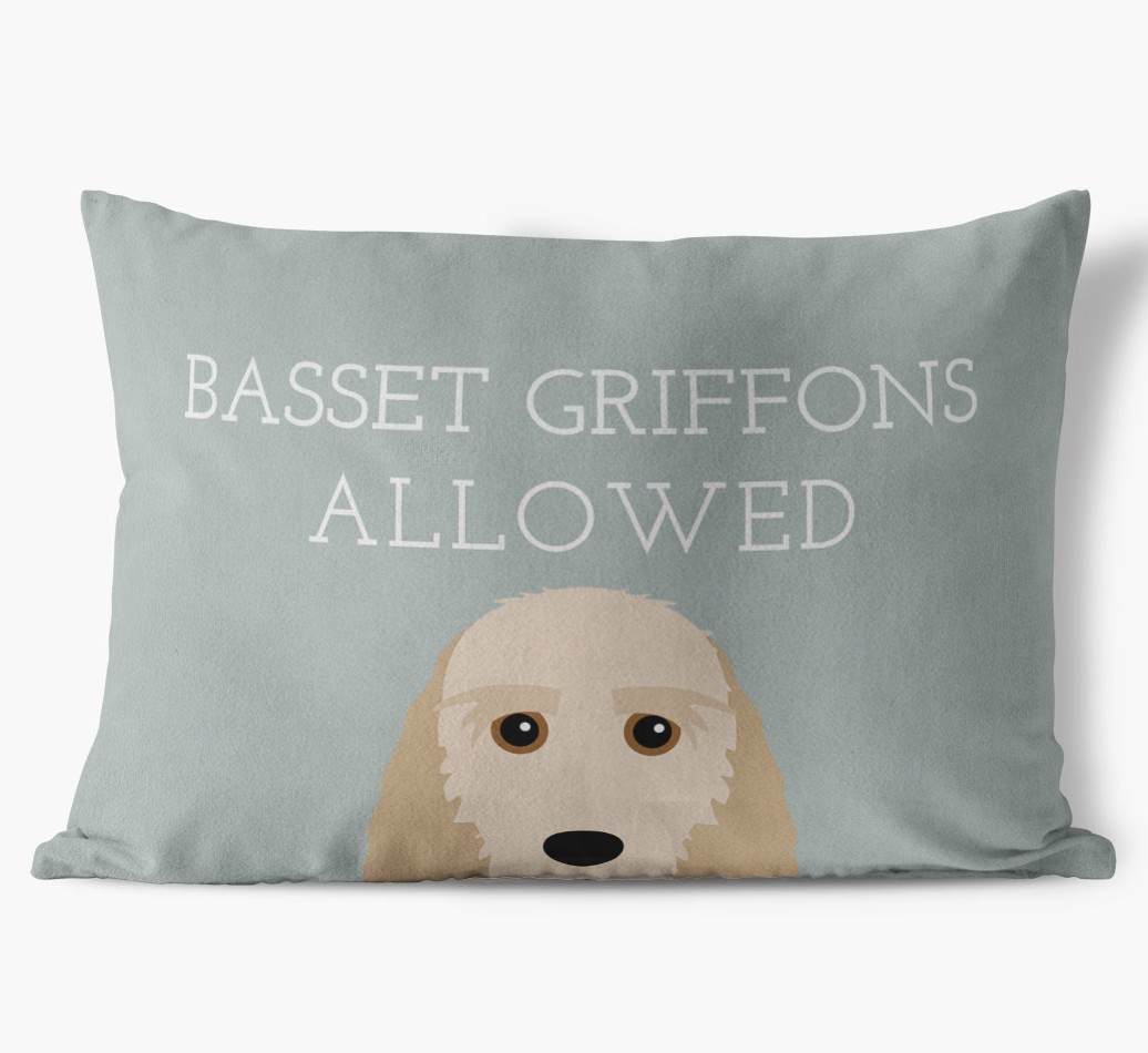 This exclusive, luxurious pillow is printed with the words ‘Basset Griffons Allowed’, which I’m sure Your Basset Griffon would definitely approve of.