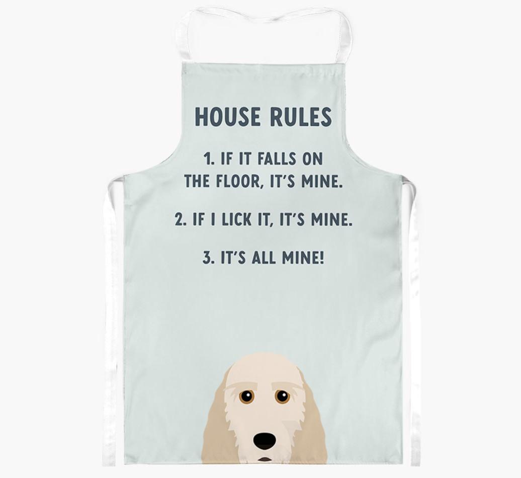 A fun way to show off your greedy pup, this stylish apron is personalized with your furry friend's icon and features their rules when it comes to food.