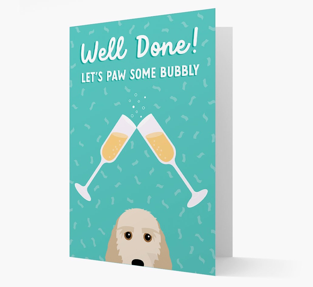 As Petit Basset Griffon Vendeen does in this card, it’s time to wish your furiend a ‘well done’ and paw some bubbly!