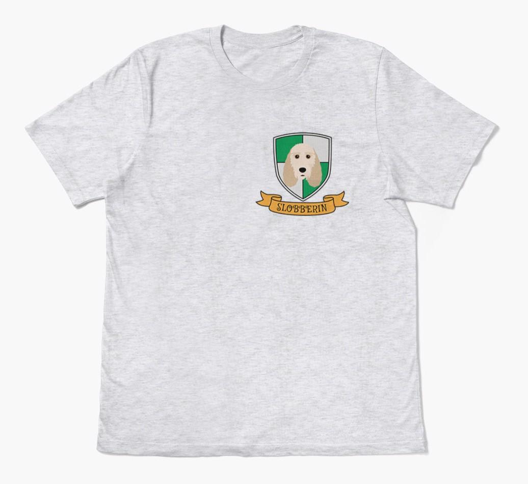 Personalised with Petit Basset Griffon Vendeen's icon upon a shield that features your green and silver (dog) house colors, this magical t-shirt will bewitch anyone who's a fan of your fantastical Basset Griffon and all things "Hairy Pawter".