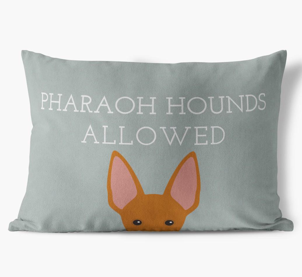 This exclusive, luxurious pillow is printed with the words ‘Pharaoh Hounds Allowed’, which I’m sure Your Pharaoh Hound would definitely approve of.