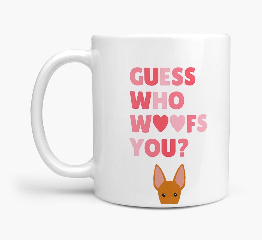 Personalized with Pharaoh Hound's cute face, this adorable mug is perfect for showing off the one who "woofs" you - how sweet!