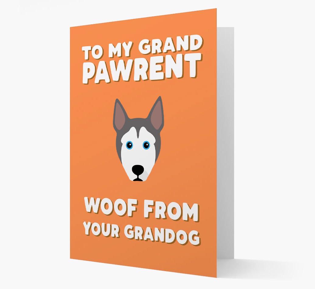 Featuring your Pitsky's pawsome icon and available in four eye-catching colors, Pitsky's grandpawrent will feel the woof each time they look at this card.