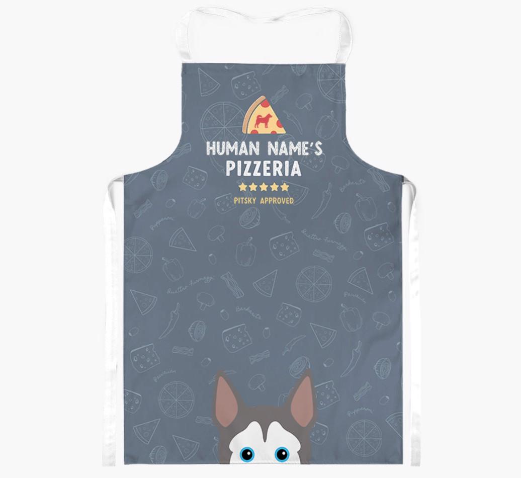 Featuring your furry friend's icon and lick of approval, plus your chosen human name, this apron is pawfect for anyone who considers themselves a pizza maestro in the kitchen. Available in a choice of 5 rustic colors, it'll make any Pitsky lover happy.