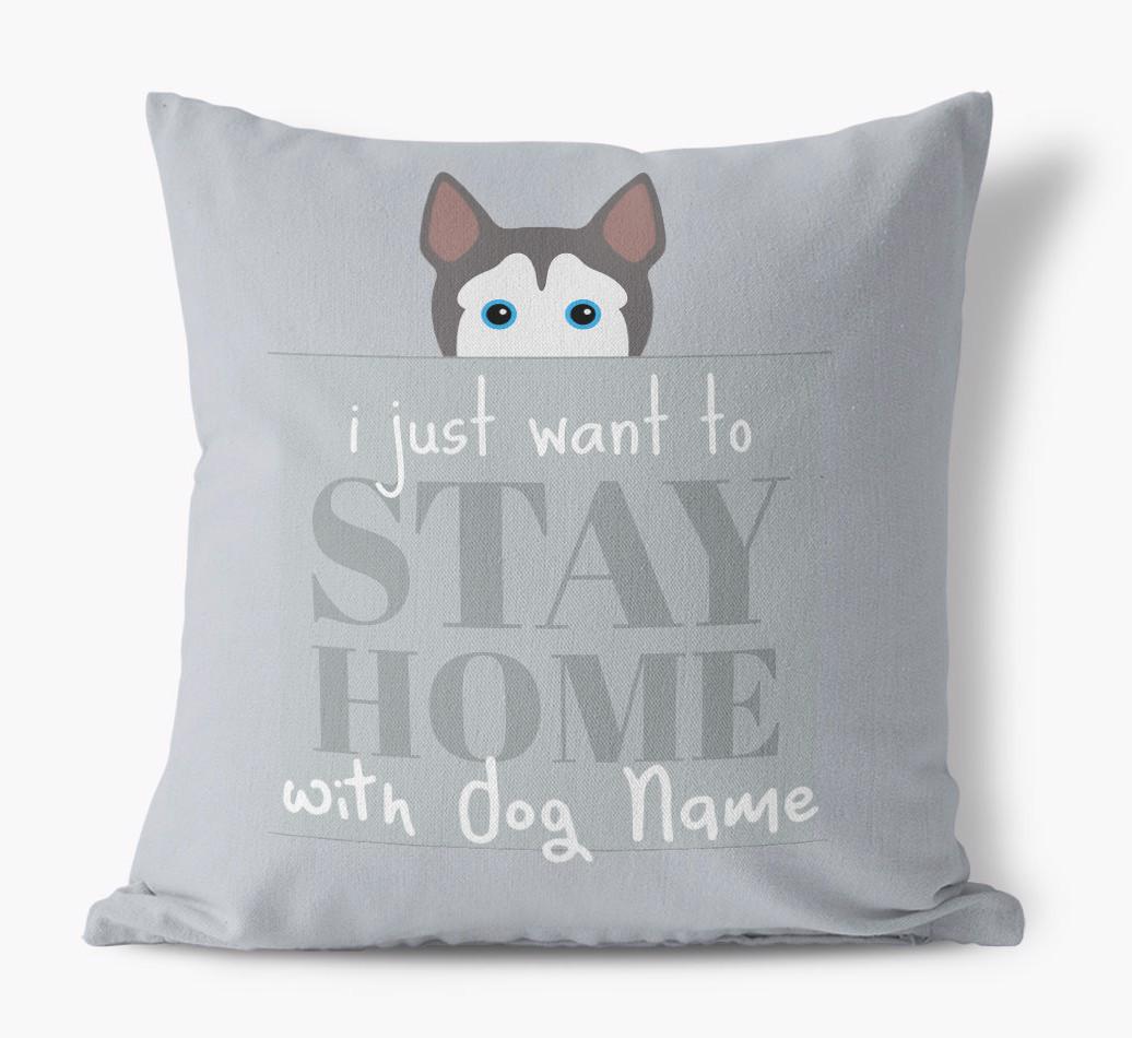 Pawfect for the couch or bed, this canvas pillow is just waiting to be snuggled while you relax with your Pitsky.