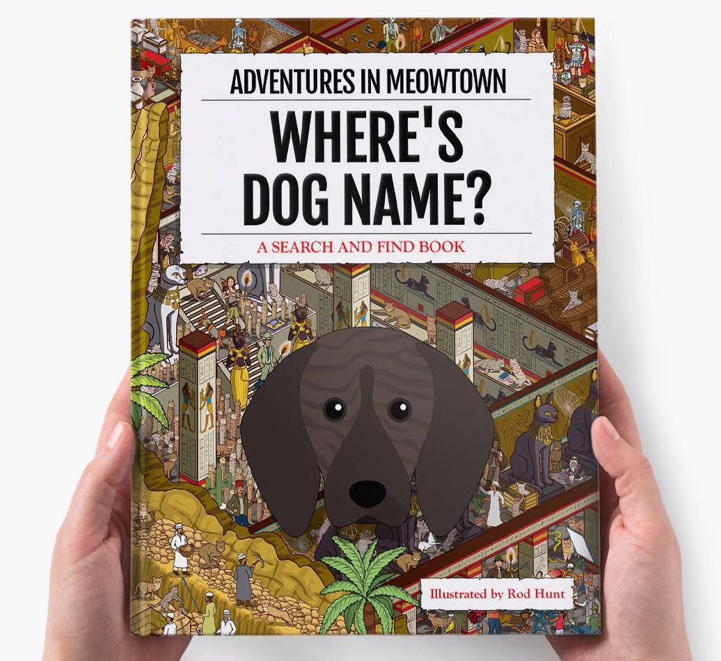 Get ready to unleash your inner detective with our popular Search & Find book, ‘Where’s (insert dog name)?’ It’s the personalized dog book everyone’s yapping about! With twelve beautifully illustrated locations to explore, we challenge you to find your adventurous {breedShortName} on each action-packed page. Can you spot all the canine cameos and funny parodies too?