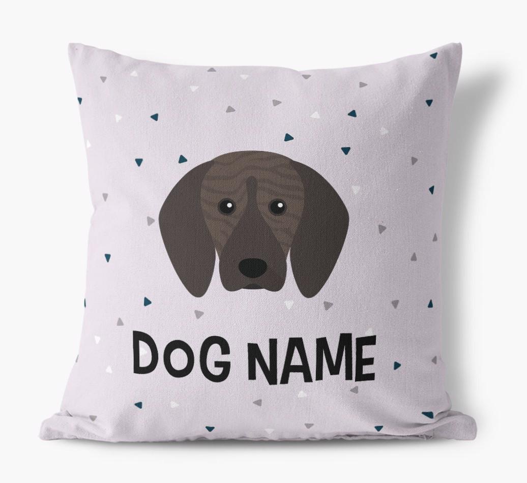 Featuring a stylish triangle pattern, this pillow is available in 5 wagnificent colors and is personalized just for Your Plott Hound, making is extra special.