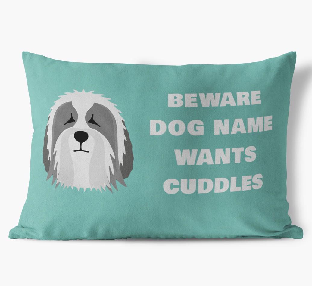 Beware of Cuddles: Personalized Polish Lowland Sheepdog Soft Touch Pillow