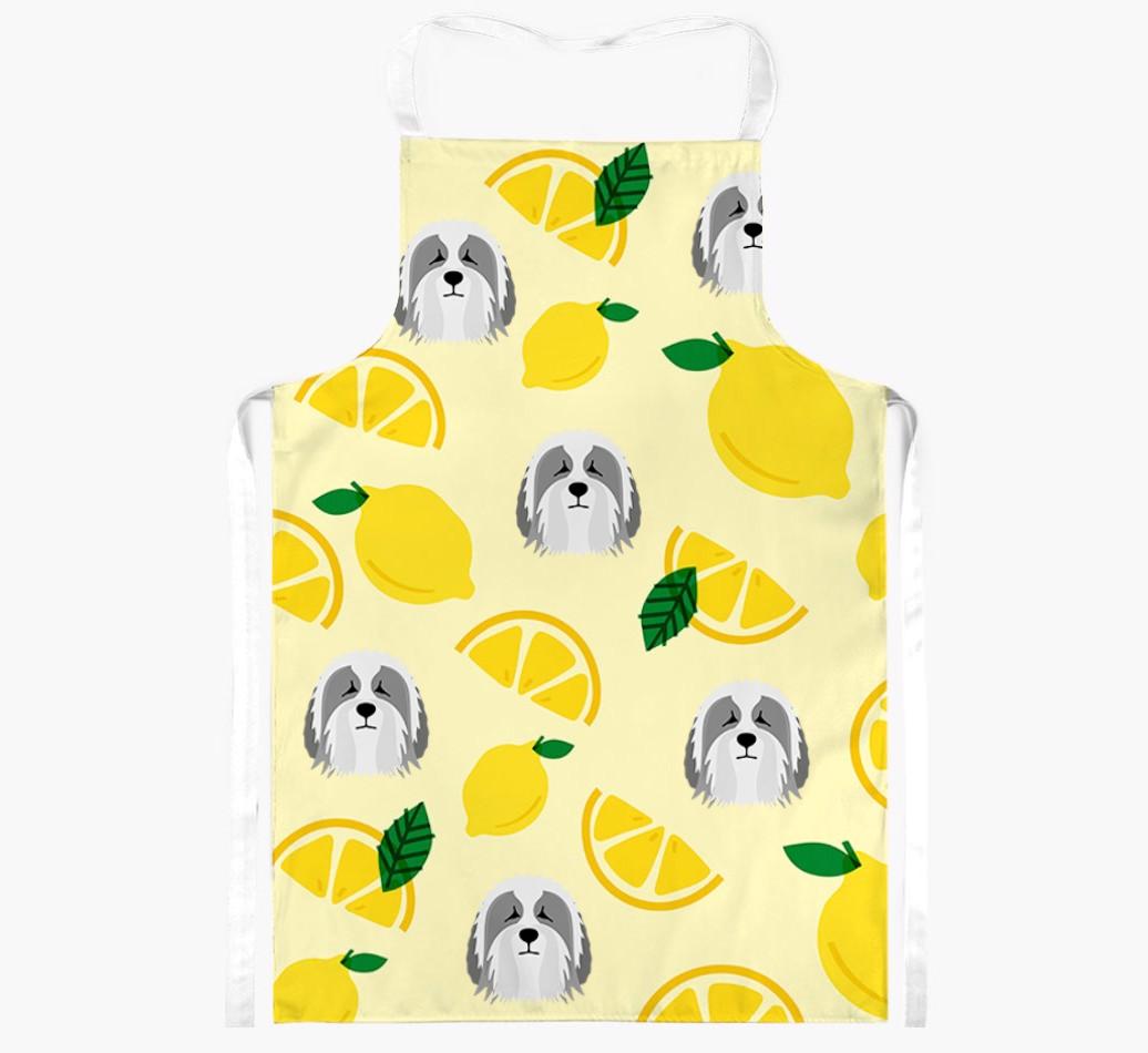 Fruity and fabulous, this apron is extra special as it features your Polish Lowland Sheepdog!
