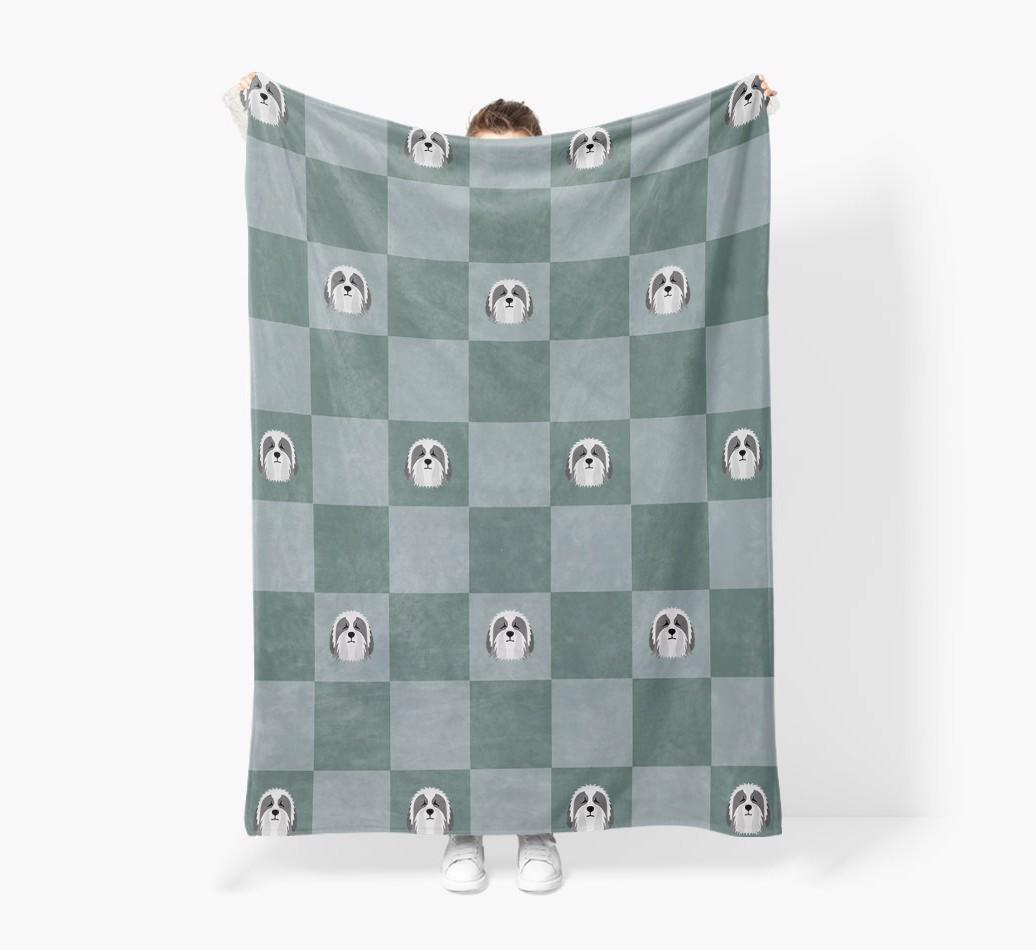 'Checkboard' - Personalized Polish Lowland Sheepdog Blanket: Premium Sherpa Fleece